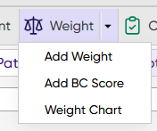 BCS can also be recorded during a consultation via the Weight toolbar in the Treatment screen using the new 'Add BC Score' option. Each entry automatically generates a clinical note in the treatment history, recording the date, time, BCS value and surgeon.